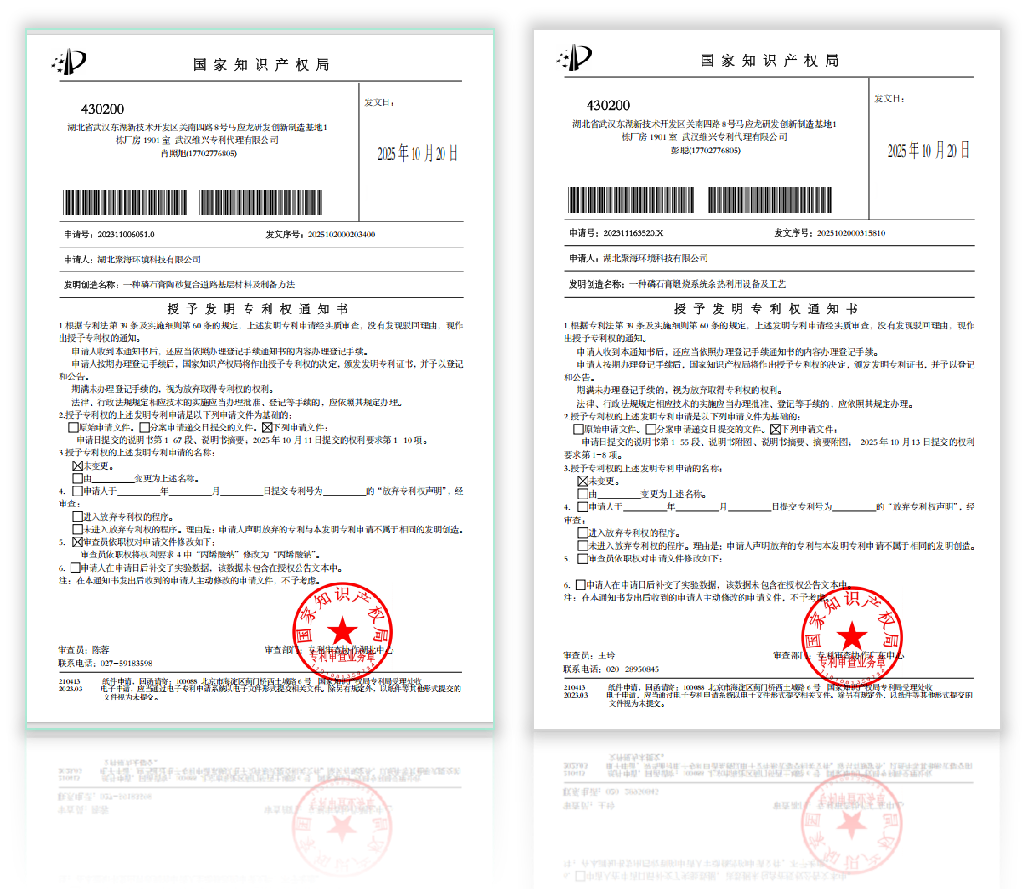 两项专利的成功授权,是聚海环境坚持“技术创新驱动发展”战略的重要成果,也是公司研发团队攻坚克难、努力拼搏的结果。公司始终以“清洁地球,创造绿色”为使命,围绕磷石膏无害化、资源化产品开发、处理工艺优化等关键环节持续投入,以自主知识产权体系建设为核心抓手,围绕关键技术突破形成100多项自主知识产权成果,构建起覆盖技术研发、成果转化的全链条知识产权保护与应用体系。未来,聚海环境将进一步聚焦固废综合利用产业,推动创新成果转化为新质生产力,为我国生态文明建设与绿色低碳发展贡献更多“聚海力量”!